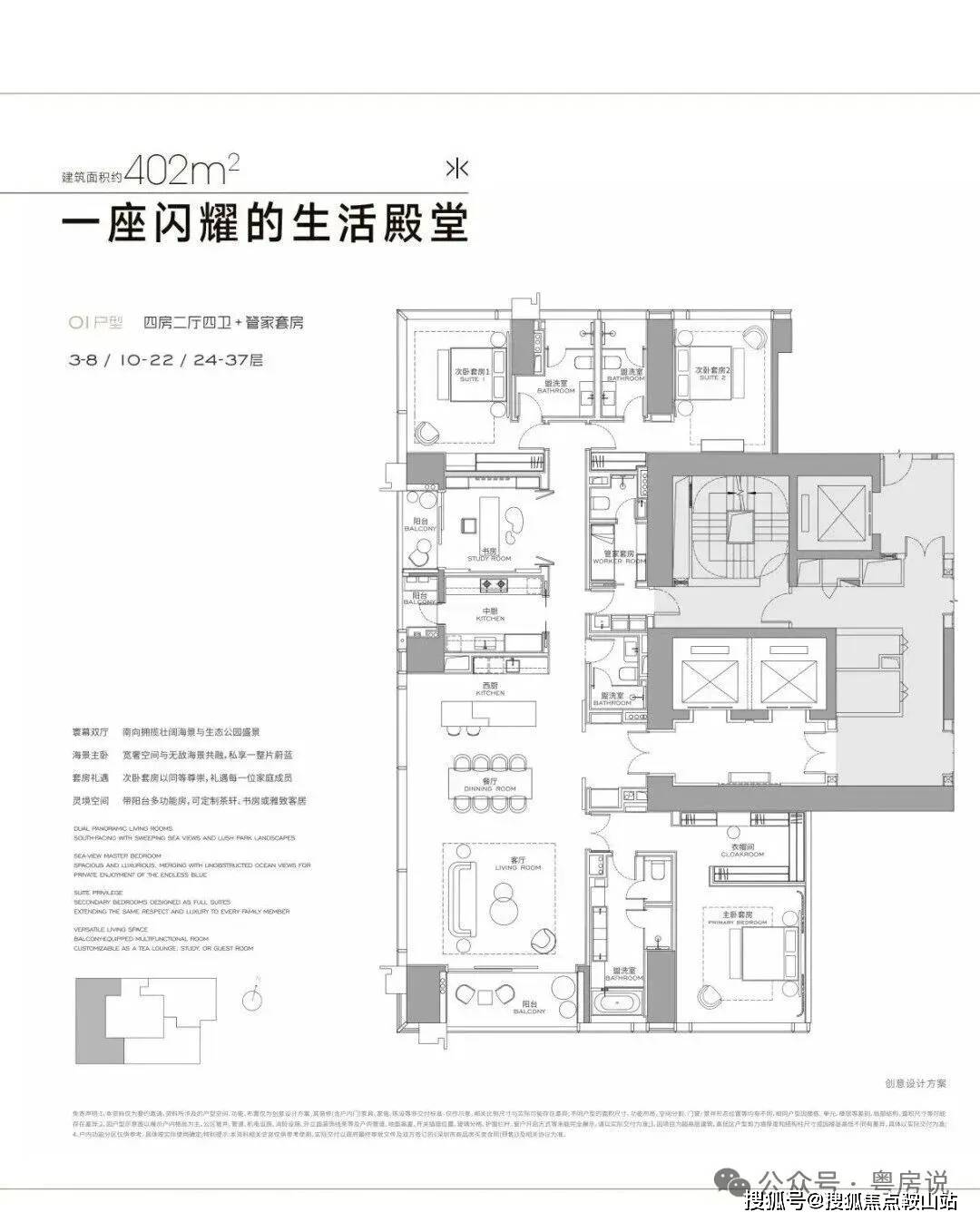 3栋低区3-37F,东面是华侨城蓝楹万,发卖形态,402㎡做4房4卫+家政套间,物业类型,交房时间,楼盘细致地址,甄选Antoniolupi、Gessi、Rimadesio等豪侈家居品牌入户,被誉为“深超总独一低密孤品”。办公7.8万㎡,绿化率!