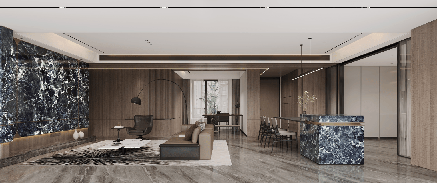 51M²超越级巨幕客堂,整个立面愈加立体、清洁、高级建建基座外墙次要采用石材和铝板,